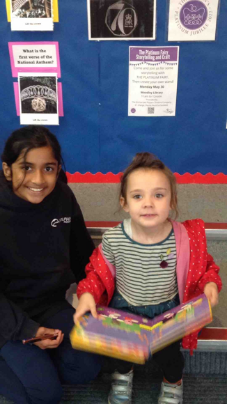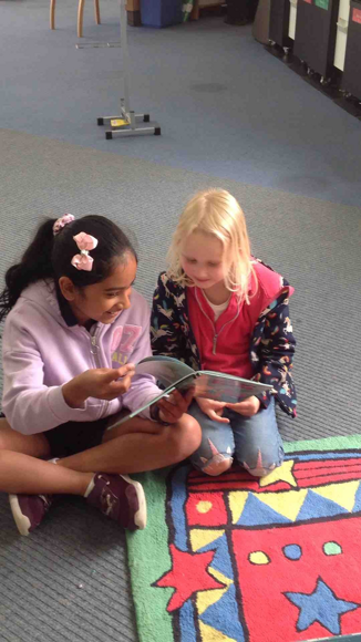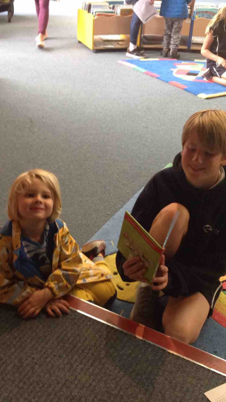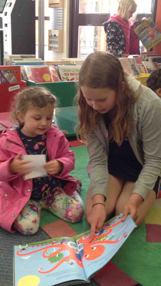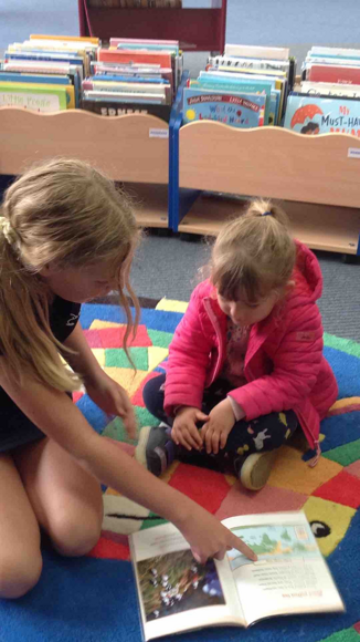 Every Nursery child has a Year 6 buddy and today they had the excitement of going on a trip with them. Year 6 joined us at the start of the day having circle, snack and a short play time in the Nursery. We then headed off in the minibuses to Woodley library. The session started with a librarian talking to us about how the library worked and which areas we were going to explore today. Each Nursery child was given a challenge of finding 5 different story themes and the Year 6 buddies read these to them. The Nursery child chose their favourite and scanned the book out to take back to Nursery. We finished the trip with a group story. As a special treat the Year 6s had lunch with the Nursery children and they then did a scavenger hunt together on the school field. The Nursery and Year 6s all loved their special morning. Now it’s time for the Year 6s to write a book for their Nursery friend.