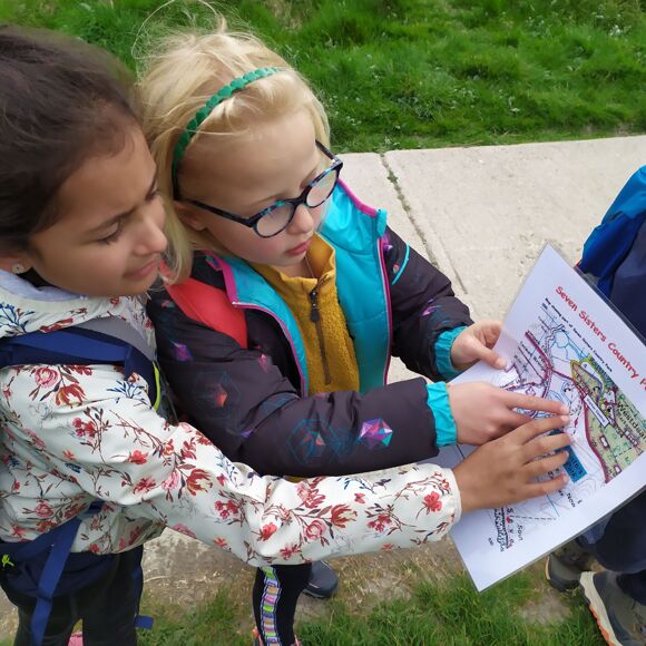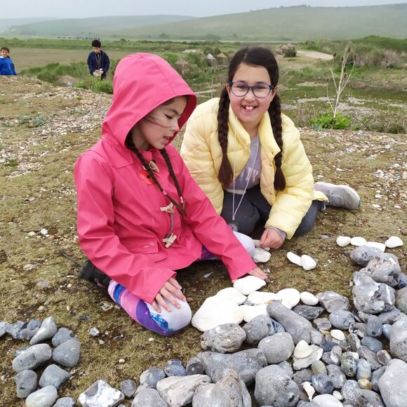 Our children’s first experience of a residential trip takes Year Three to East Sussex. The trip is a wonderful experience to introduce lifelong skills of independence, resilience, friendship and love of learning. On Day One our first geographical challenge was spot river and coastal features at Cuckmere Haven on our maps. We used natural objects to create the meanders in the river, the river mouth and estuary in the style of Andy Goldsworthy. We used a quadrat to identify the variety of plants adapted to the coastal environment. We measured the flow of the river as it reached the sea and explored how erosion has moved the cliff top houses into a precarious position.