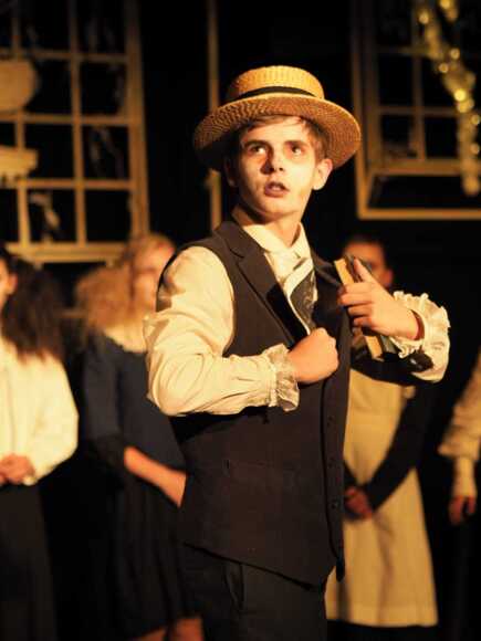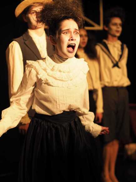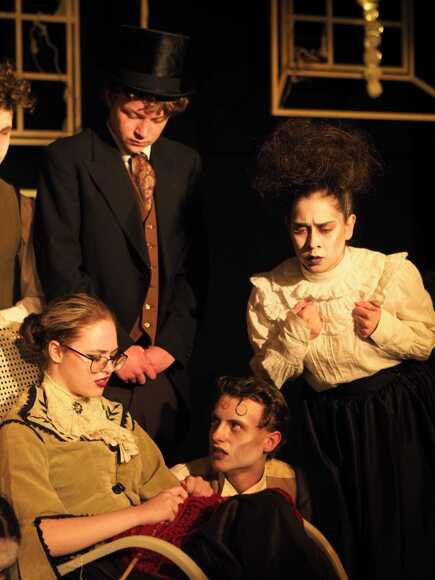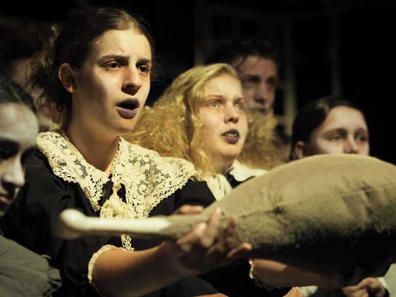 Original music was composed for the show by Oli Hagen; the first soundtrack he has ever written. It was quite simply beautiful. The set design was another masterpiece by Joe de Mounteney and the costumes were cleverly assembled by the talented trio, Minaz, Julia and Anwen. The hair and make-up, designed and executed by Anna Seall, was striking and bold; their gaunt faces stayed with the audience long after the curtain had fallen.