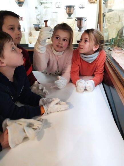 Year 3 took a short trip to Reading University classics department to visit the Ure Museum. It is named after the first Professor of Classics at the University who believed in a hands-on approach to learning. Year Three were delighted to don white gloves to handle a range of Greek vases from the minute to the large. They tried to work out their use, and note other interesting details such as their decoration, and the information we can gain today about life in ancient Greece derived from the illustrations on the vases. The day ended with each house presenting a tableau vivant based on a vase image. Lancaster won.