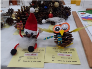 We entered a number of classes as usual including the Young Exhibitor’s heaviest pumpkin which we won with our 23kg specimen. There were prizes too in the Christmas card and Christmas parcel categories for Year 4 and for the second year in a row Jessica won the best decoration made from a pine cone, although this year she had to share it with her brother Matthew.