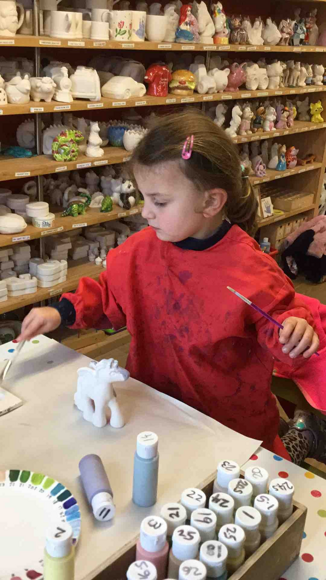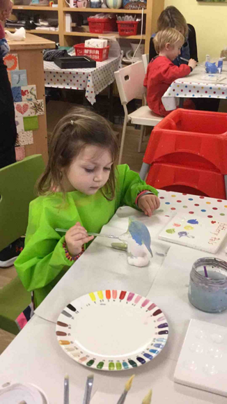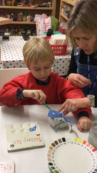 Our trip to Pottery Pals was a great success. Every child could choose between a shark, mermaid, dolphin or unicorn to paint and each child had their own mixing palette for their paints. It was wonderful to see how thoughtfully colours were chosen and how well the children concentrated on their particular item. The item produced were so individual….for example we had blue sharks, a red and white shark and even a multicoloured one!