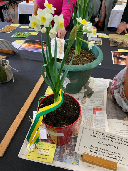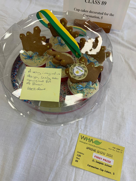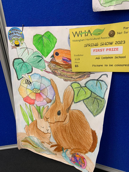 Once again Dolphin School gardeners were delighted to be able to participate in the Wokingham Horticultural Association’s Spring Show that was held on 25th March. A total of 27 different children entered in a number of classes and they all did very well in the Young Exhibitor classes. We won lots of first prizes including the under Year3 colouring, the under Year 6 poster, the children’s Coronation Cup Cakes and the mystery bulb growing. Mrs Light was also awarded second place for her entry in the adult colouring class. To top it all off we also won the Southfields Cup for best Young Exhibitor entry.