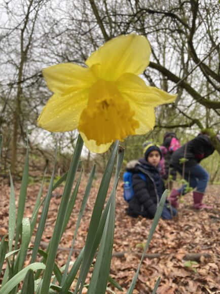 Year 1 enjoyed a rather soggy but lovely Spring Walk to Dinton Pastures. We carefully looked for signs of spring and found new green buds, clusters of daffodils and lots and lots of muddy puddles. Jumping and splashing in the mud was certainly a highlight. We even found a maze of bushes to explore and find our way back out!