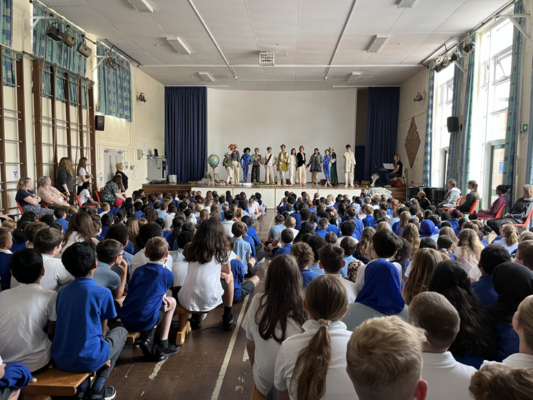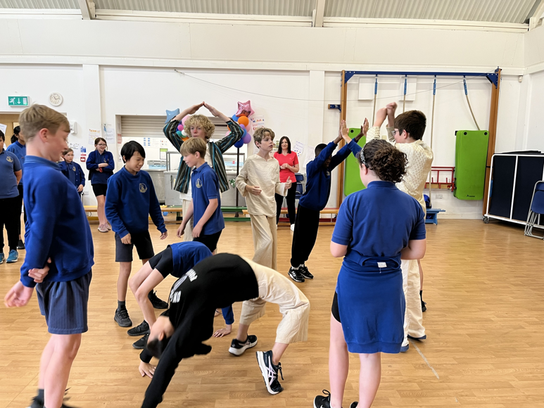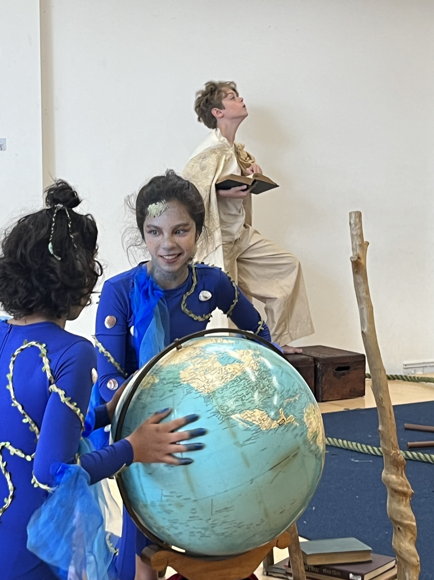 This year we decided to take a fast and furious version of Shakespeare’s ‘Tempest’ into local schools and follow it up with a drama workshop and a Q & A session. We were welcomed into the following schools: Geoffrey Field and Katesgrove Schools in Reading and St Nicholas School in Hurst. The tour ended with a public performance at our favourite Reading venue: South Street Arts Centre. At Geoffrey Field School we performed to our largest audience ever - 360 children! To get a flavour of the experience see the photos below.