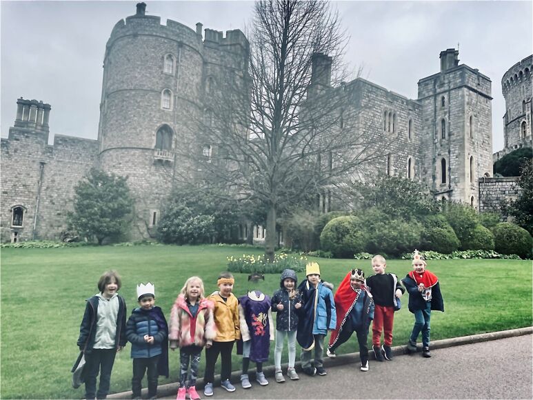 Sophie, the storyteller, encouraged the children to dress up and take on different roles. Just before heading home, 8 soldiers which came marching right by Reception. The children watched the Changing of the Guard with delight! Thank you Windsor Castle.