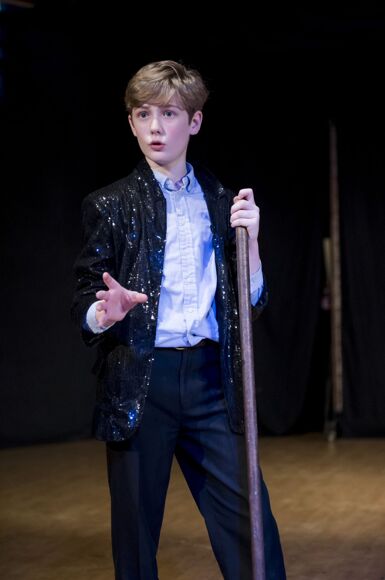 The children did a fantastic job embodying the characters whenever on stage whether speaking or not. The blue haired princes alongside the entitled step sisters and their mother did brilliantly in maintaining their characters’ strong personalities. Their movement and constant reaction to the main action really brought scenes to life juxtaposing the main characters and allowing them to really shine. I was particularly impressed with the main cast: Leona Hauldren played a demure yet strong willed ‘Cindy’ showcasing her beautiful singing voice; Toby Jeffery really became one with his character, maintaining the passion and single mindedness of an up-and-coming thespian throughout, in addition he and Tom Akazou produced a quick witted and natural friendship. The genuineness of these three young actors truly made the performance shine when combined with the well-executed silliness and theatrics of the rest of the cast.