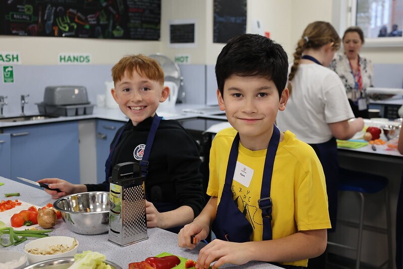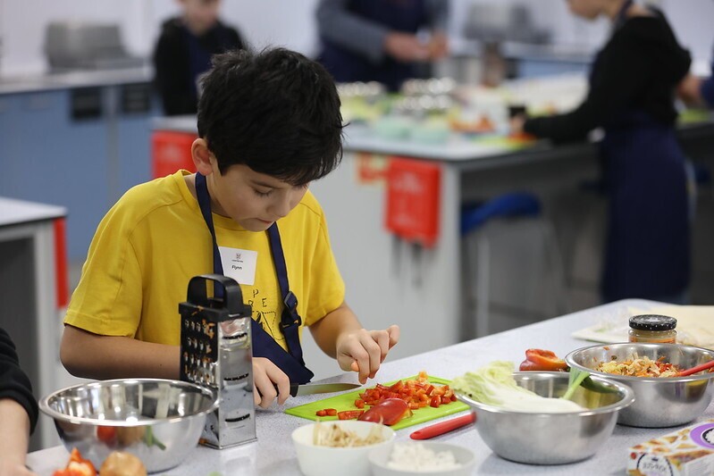 The workshop then moved to the Food Technology room, where the students had the chance to create delicious Chinese Spring Rolls. Under the guidance of their Food Tech teacher Karen Hicks, the students learned how to make the tasty treats, gaining valuable skills including food prep, chopping, grating and cooking.