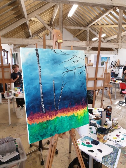 A 3 hour studio visit to paint acrylic on canvas. Trees, colour, composition are themes that are covered.