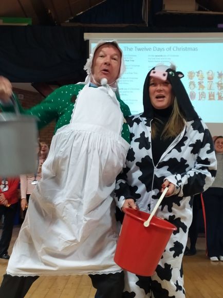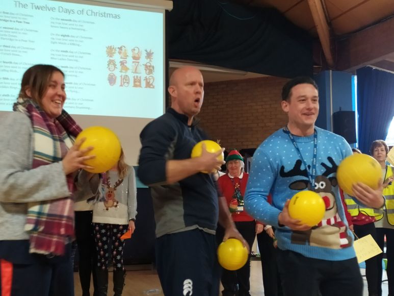Dolphin Staff entertain the children with their version of 'Twelve Day of Christmas'.