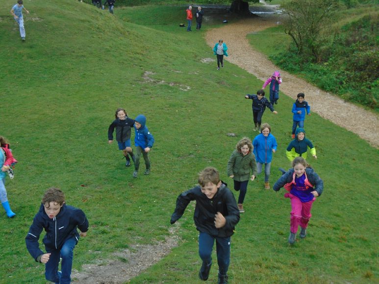 We travelled on the hillfort at Danebury where the weather God’s smiled on us for our walk along the ancient walls. We looked for evidence of ditches and ramparts as well as the entrance gates. Archaeologists at work hunting for clues for how the defences were built. We all had a lot of fun running down the slopes on our way back to the bus.